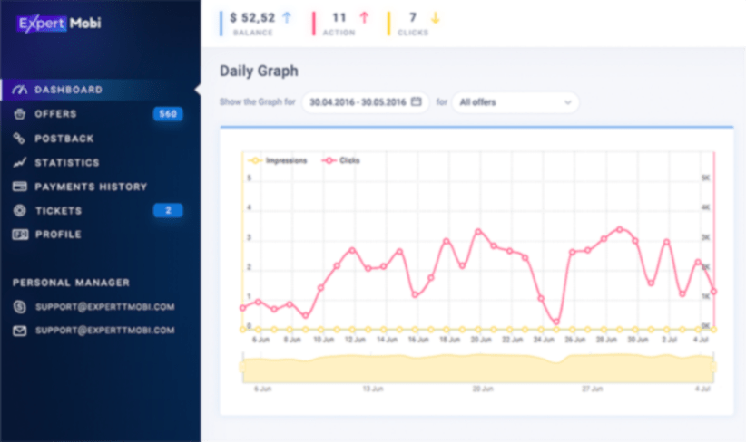 Global coverage, guaranteed high payouts, direct offers, dedicated AMs and custom tracking platform make us the leaders on CPA market